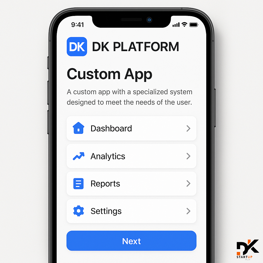 ที่ DK Startup Co., Ltd. เรามีประสบการณ์ในการพัฒนาแอปหลากหลายประเภท ทั้งในรูปแบบ Mobile Application และ Web Application รองรับทุกอุตสาหกรรมและความต้องการเฉพาะของลูกค้า